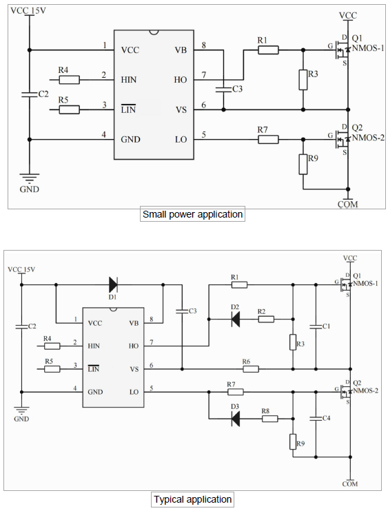 •主要特點:集成自舉二極管;為自舉操作設計的浮動通道;完全工作到+350V;容忍負瞬態(tài)電壓;v /dt免疫;柵極驅(qū)動供電范圍從5到20V;欠壓鎖定;3.3V, 5V和15V輸入邏輯兼容