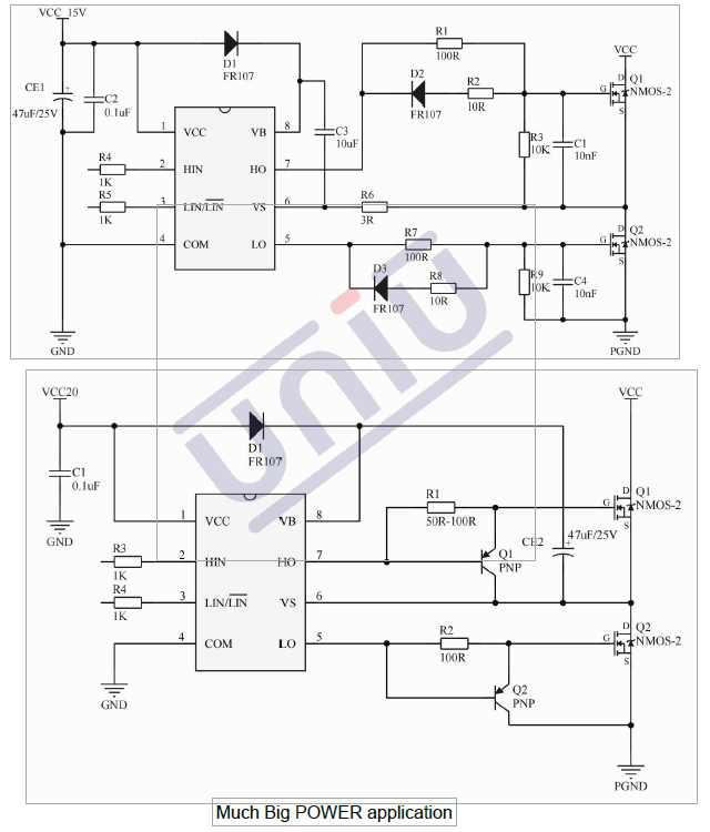 •主要特點(diǎn):浮動(dòng)通道設(shè)計(jì)用于引導(dǎo)操作,完全工作到+600V,可承受負(fù)瞬態(tài)電壓dV/dtImmune,柵極驅(qū)動(dòng)供電范圍從3到20V,欠壓鎖定,3.3V, 5V和15V輸入邏輯兼容,交叉?zhèn)鲗?dǎo)防止邏輯,兩個(gè)通道匹配傳播延遲