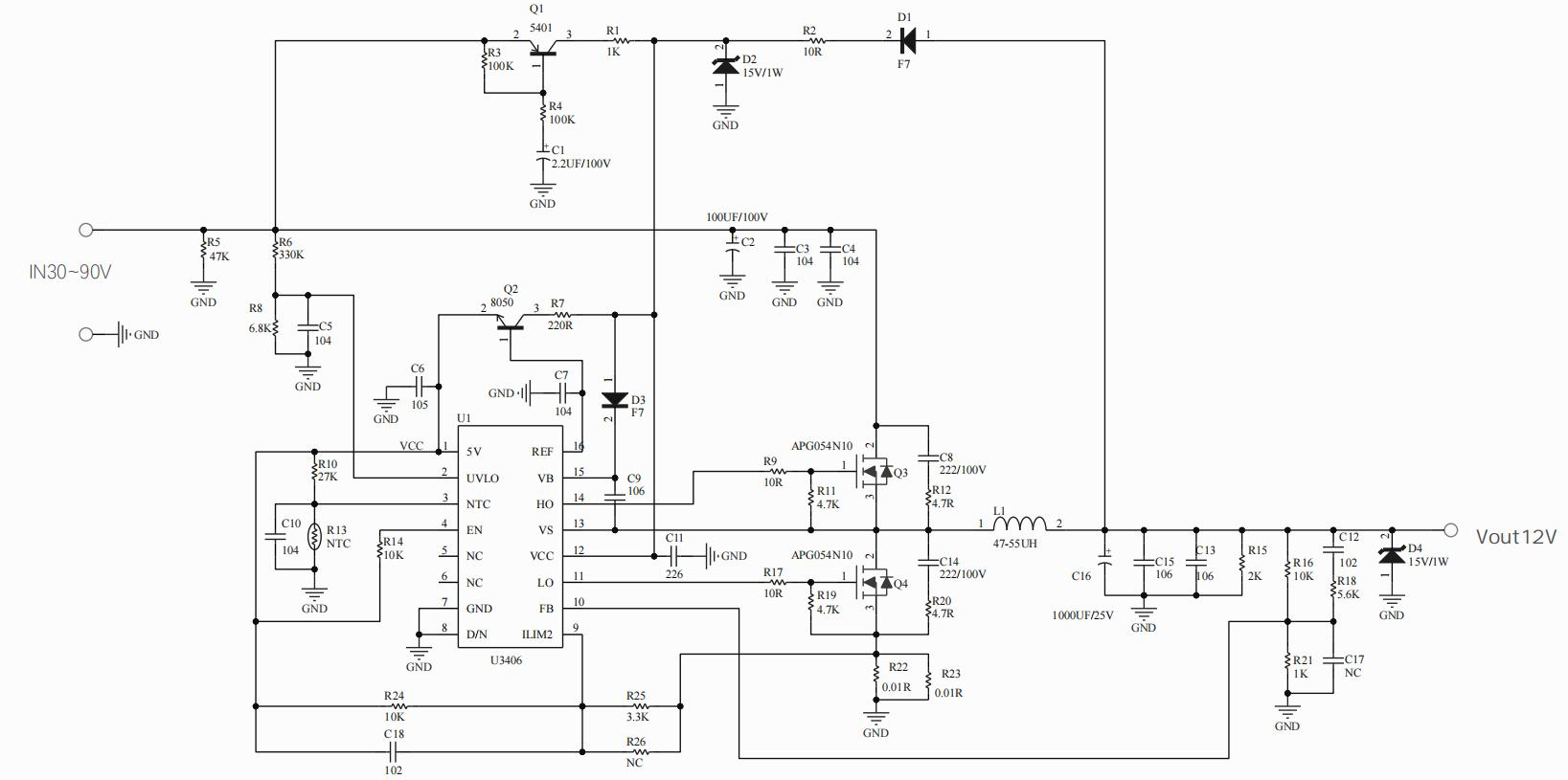 •產品描述:U3406 400V同步降壓控制器通過高輸入電壓源或高壓瞬變輸入軌進行調節(jié),最大限度地減少了對外部浪涌抑制組件的需求。高側開關最小導通時間為60 ns,具有較大的降壓比,可實現從100V標稱輸入到低壓軌的直接降壓轉換,從而降低系統復雜性和解決方案成本。U3406在輸入電壓低至8.5V的情況下繼續(xù)工作,如果需要,可以接近100%的占空比,使其成為高性能100V電池汽車應用,ADAS(環(huán)視ECU)和HEV/EV系統的絕佳選擇。強制pwm (FPWM)操作消除了開關頻率變化,以最大限度地減少EMI,而用戶可選擇的二極管仿真降低了輕負載條件下的電流消耗。測量低側MOSFET的壓降或使用可選的電流檢測電阻提供逐周期過流保護。可調開關頻率高達0.5MHz,可以同步到外部時鐘源,以消除噪聲敏感應用中的拍頻。