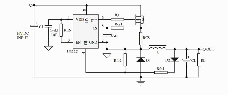 U322C是一款高性能低成本PWM控制功率器,適用于離線式小功率降壓型應用場合,外圍電路簡單、器件個數(shù)少。同時產品內置高耐壓MOSFET可提高系統(tǒng)浪涌耐受能力。與傳統(tǒng)的PWM控制器不同,U322C內部無固定時鐘驅動MOSFET,系統(tǒng)開關頻率隨負載(輕載、重載)變化可實現(xiàn)自動調節(jié)。同時芯片采用了多模式PWM控制技術,有效簡化了外圍電路設計,提升線性調整率和負載調整率并消除系統(tǒng)工作中的可聞噪音。此外,芯片內部峰值電流檢測閾值可跟隨實際負載情況自動調節(jié),可以有效降低空載情況下的待機功耗。U322C集成有完備的帶自恢復功能的保護功能:VDD欠壓保護、逐周期電流限制、輸出過壓保護、過熱保護、過載保護和VDD過壓保護等。
