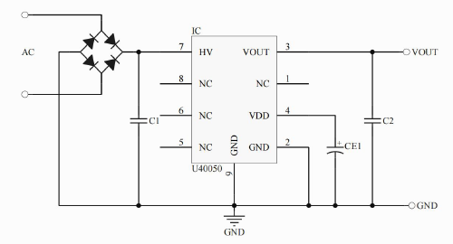 U40050 是一款緊湊型無電感設(shè)計的離線式 線 性 穩(wěn) 壓 器 。 U40050 固 定 輸 出 5V 電 壓 。 U40050是一種簡單可靠的獲得偏置供電的離線 式電源解決方案。 U40050 集成了600V 功率MOSFET ,啟動 控制電路,VDD電壓控制電路,低壓差穩(wěn)壓器 等。該芯片通過智能控制交流能量輸入以減小系 統(tǒng)損耗,提高系統(tǒng)效率,同時有效降低系統(tǒng)待機。 U40050集成有完備的帶自恢復(fù)功能的保護 功能:輸出短路保護,輸出過載保護,雷擊浪涌 保護和內(nèi)置過溫保護等。