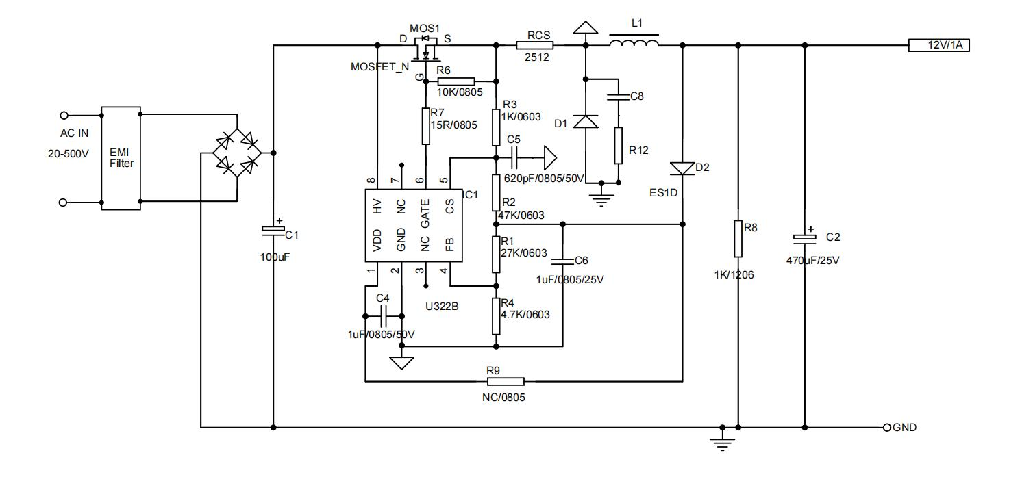 ● 集成700V 高壓啟動電路 ● 多模式控制、無異音工作 ● 支持降壓和升降壓拓撲 ● 默認12.5V 輸出(FB 腳懸空) ● 待機功耗低于 50mW ● 良好的線性調(diào)整率和負載調(diào)整率 ● 集成軟啟動電路 ● 內(nèi)部保護功能: > 過載保護 (OLP) > 逐周期電流限制 (OCP) > 輸出過壓保護 (OVP) > VDD 過壓、欠壓和電壓箝位保護
